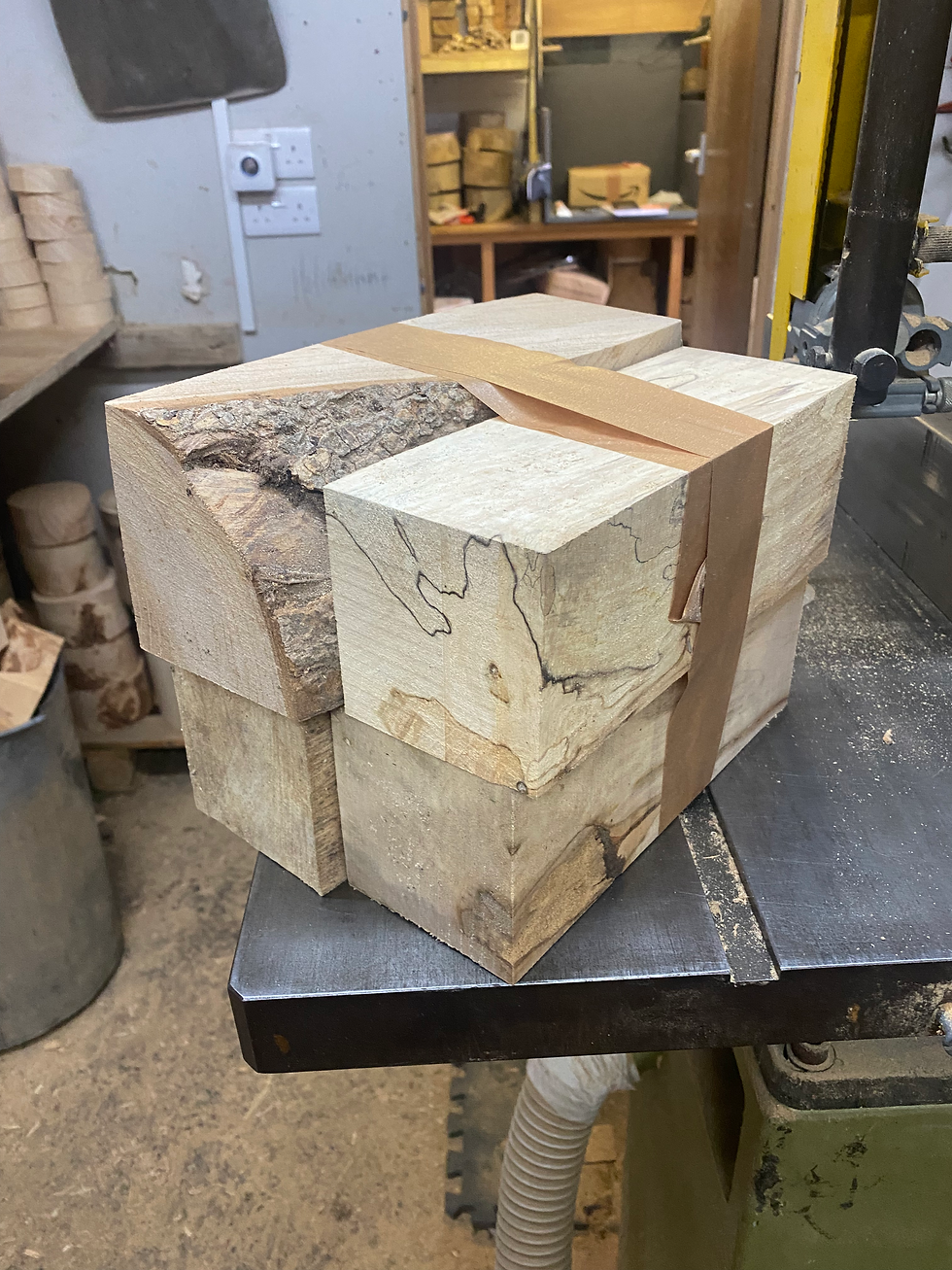 4, spindles 4”x4” x10”. 3 sycamore, 1 elm